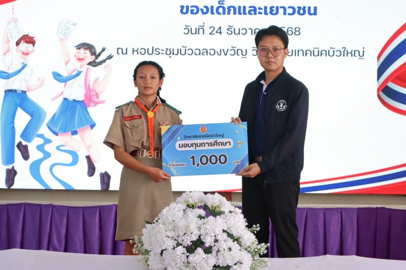 วันพุธที่ 24 ธันวาคม 2568 นายสุรชัย ผาโคตร ผู้อำนวยการวิทยาลัยเทคนิคบัวใหญ่ นำคณะผู้บริหาร ครู ลูกเสือวิสามัญ และนักศึกษาวิชาทหาร เข้าร่วมโครงการสนับสนุนการมีส่วนร่วมของเครือข่ายในการป้องกันพฤติกรรมและการกระทำความผิดของเด็กและเยาวชน โดย สถานพินิจและคุ้มครองเด็กและเยาวชนจังหวัดนครราชสีมา มาให้ความรู้กับนักเรียน นักศึกษา เรื่อง การป้องกันตนเองจากภัยสังคม การสร้างจิตสำนึกและวินัยในตนเอง การรู้เท่าทันและห่างไกลยาเสพติด การต่อต้านทุจริตคอร์รัปชัน และการป้องกัน แก้ไขปัญหาพฤติกรรมที่มีความเสี่ยงต่อการกระทำผิดทางอาญา ในโอกาสนี้ สถานพินิจและคุ้มครองเด็กและเยาวชนจังหวัดนครราชสีมา ได้มอบทุนการศึกษาให้กับนักเรียน นักศึกษา ที่มีความประพฤติดีจำนวน 8 ทุน ณ หอประชุมบัวฉลองขวัญ วิทยาลัยเทคนิคบัวใหญ่