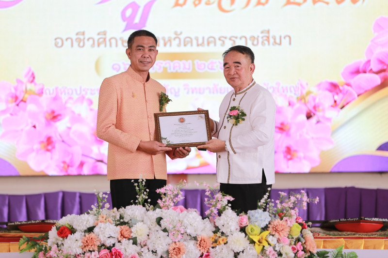 วันศุกร์ที่ 16 มกราคม 2569 นายสุรชัย ผาโคตร ผู้อำนวยการวิทยาลัยเทคนิคบัวใหญ่ นำคณะผู้บริหาร ครู และบุคลากรทางการศึกษา ดำเนินการพิธีบูชาบูรพาจารย์ เนื่องในโอกาสวันครู ประจำปี 2569 สำนักงานอาชีวศึกษาจังหวัดนครรราชสีมา และพิธีมอบรางวัลผู้บริหารดีเด่น รางวัลครูดีเด่น รางวัลบุคลากรดีเด่น โดย นายนนท์ธพันธุ์ พิมพา ผู้อำนวยการวิทยาลัยเทคนิคนครราชสีมา ปฏิบัติหน้าที่ รองผู้อำนวยการ ผู้อำนวยการสำนักงานอาชีวศึกษาจังหวัด นครราชสีมา เป็นประธานในพิธี ซึ่งมีสถานศึกษา สังกัดสำนักงานอาชีวศึกษาจังหวัดนครราชสีมา เข้าร่วม จำนวน 13 สถานศึกษา วัตถุประสงค์การดำเนินงาน เพื่อรำลึกถึงพระคุณของครูอาจารย์ผู้ประสิทธิ์ประสาทวิชาความรู้ในอดีต (บูรพาจารย์) รวมถึงองค์พระวิษณุกรรมอันเป็นที่เคารพสักการะของชาวอาชีวศึกษา และเพื่อยกย่องเชิดชูเกียรติวิชาชีพครู ในฐานะแม่พิมพ์ของชาติ และสร้างขวัญกำลังใจในการปฏิบัติหน้าที่ราชการแก่บุคลากรในสังกัดสำนักงานอาชีวศึกษาจังหวัดนครราชสีมา ณ หอประชุมบัวฉลองขวัญ วิทยาลัยเทคนิคบัวใหญ่