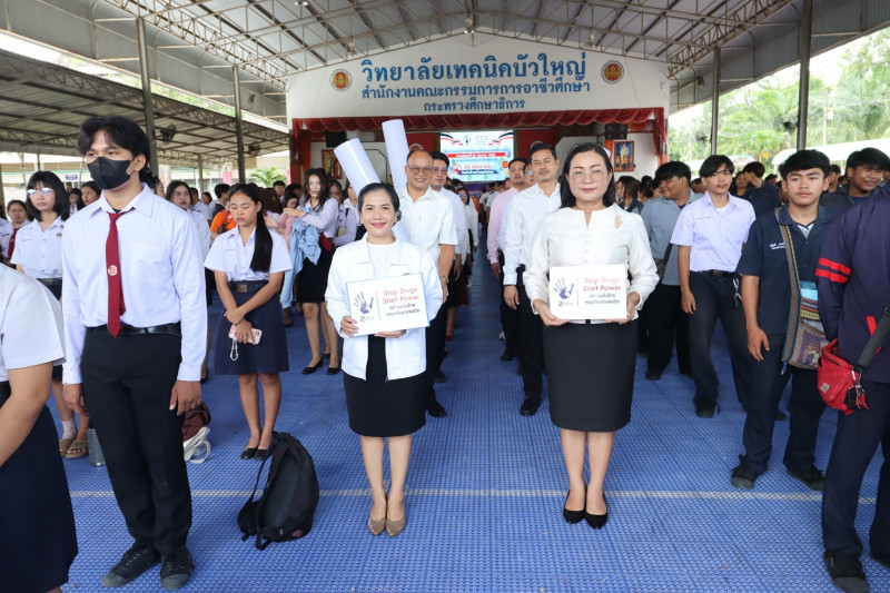 วันพฤหัสบดีที่ 26 มิถุนายน 2568 นายธีรชัย ภูทอง ผู้อำนวยการวิทยาลัยเทคนิคบัวใหญ่ มอบหมายให้ งานปกครอง ฝ่ายพัฒนากิจการนักเรียน นักศึกษา นำคณะผู้บริหาร ครู บุคลากรทางการศึกษา และนักเรียน นักศึกษา เข้าร่วมโครงการรณรงค์ประชาสัมพันธ์และการจัดกิจกรรมวันต่อต้านยาเสพติด (26 มิถุนายน) ประจำปี พ.ศ.2568 การปฏิญาณตน ประกาศเจตนารมณ์ต่อต้านยาเสพติด และร่วมกันเดินรณรงค์ประชาสัมพันธ์ เพื่อให้บุคลากรทางการศึกษา และนักเรียน นักศึกษาเกิดความตระหนักถึงภัยจากยาเสพติดพร้อมเข้าร่วมในการแก้ไขปัญหายาเสพติดอย่างจริงจังและต่อเนื่องเอาชนะยาเสพติดให้ได้ผลอย่างยั่งยืน ณ วิทยาลัยเทคนิคบัวใหญ่