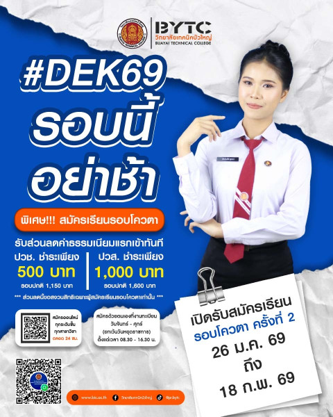 เปิดรับสมัครรอบโควตา ครั้งที่ 2 วันที่ 26 ม.ค. 69 - 18 ก.พ. 69
