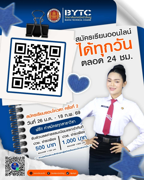 #วิทยาลัยเทคนิคบัวใหญ่ #BYTC #อำเภอบัวใหญ่ #อาชีวศึกษา #เรียนสายอาชีพ #สมัครเรียน69 #ปวช #ปวส #รอบโควตา